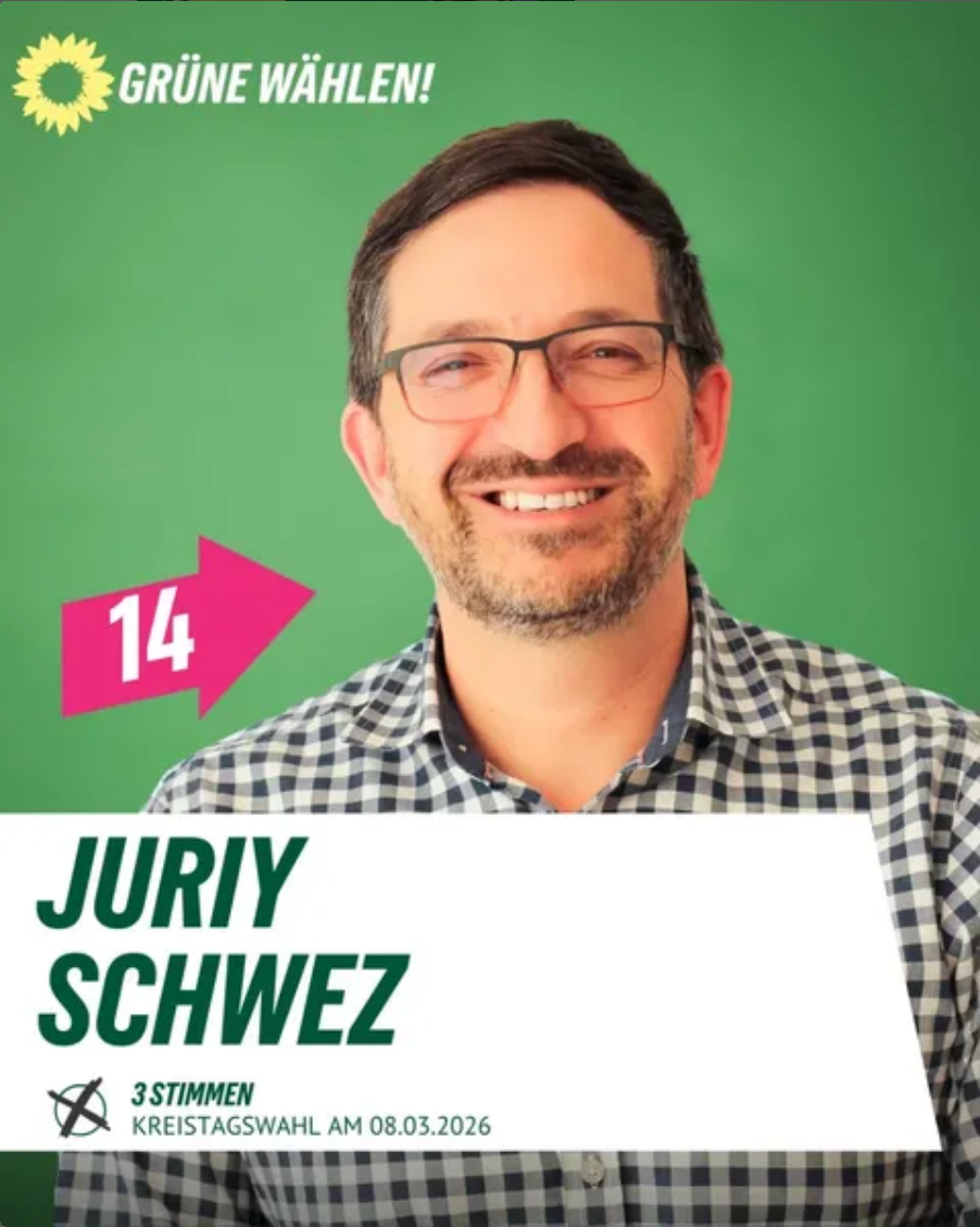 Juriy Schwez aus Grettstadt, ist 44 Jahre alt und von Beruf Arzt. Auch er kandidiert für uns auf Listenplatz 14 für den Kreistag des Landkreises Schweinfurt.
