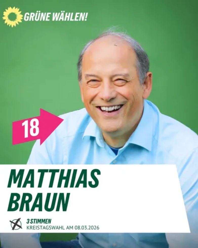 Außerdem ist er Beisitzer im Vorstand des Grünen Kreisverbandes Schweinfurt. Seine Schwerpunkte hat er in der Energiewende, dem Klimaschutz und der praktischen Ausgestaltung speziell in den Kommunen.