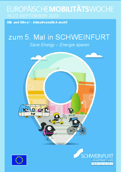 Die Europäische Mobilitätswoche ist eine internationale Kampagne der EU-Kommission. Auch Schweinfurt ist in der Woche vom 16. bis 22. September unter der federführenden Regie der Arbeitsgruppe Klimafreundliche Mobilität und Energie der Lokalen Agenda 2030 sowie den Mitarbeitern des Bau- und Umweltamtes der Stadt Schweinfurt wieder dabei und das zum bereits fünften Mal. Ab sofort und dauerhaft steht die Mobilitätswoche unter dem Motto „Mix and Move! – klimafreundlich mobil“. Das Leitthema zur Nachhaltigkeit der Mobilität wechselt jährlich und ist 2023 „Save Energy – Energie sparen“.