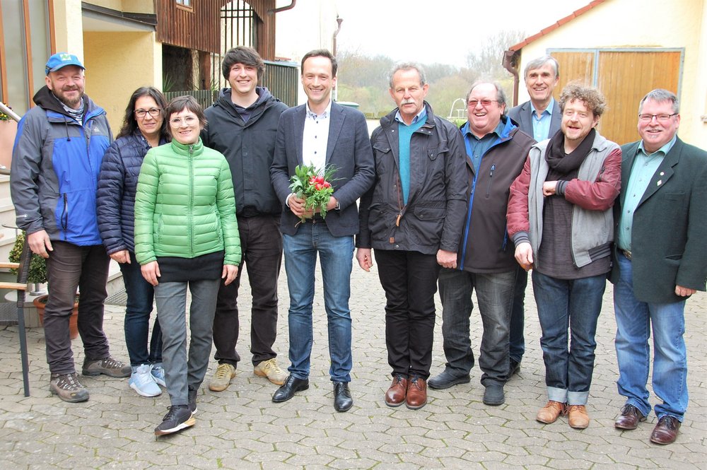 Das sagten die beiden Sprecher des Grünen Kreisverbands, Ayfer Rethschulte (Schweinfurt) und Johannes Weiß (Werneck) ebenso zu wie das für die Kreistagsfraktion der stellvertretende Fraktionsvorsitzende Walter Rachle (Sennfeld) und der Landtagsabgeordnete Paul Knoblach taten, in dessen Biohof in Garstadt die Demonstration der Geschlossenheit im Beisein etlicher weiterer grüner und roter Mandatsträger über die Bühne ging. Als weiteres Symbol für das fortgesetzte Miteinander überreichte die Schweinfurter Stadträtin Rethschulte dem Landrat ein rot-grünes „Sträußchen“, bestehend aus Radieschen, Bärlauch, Rucola, Schnittlauch und Petersilie.