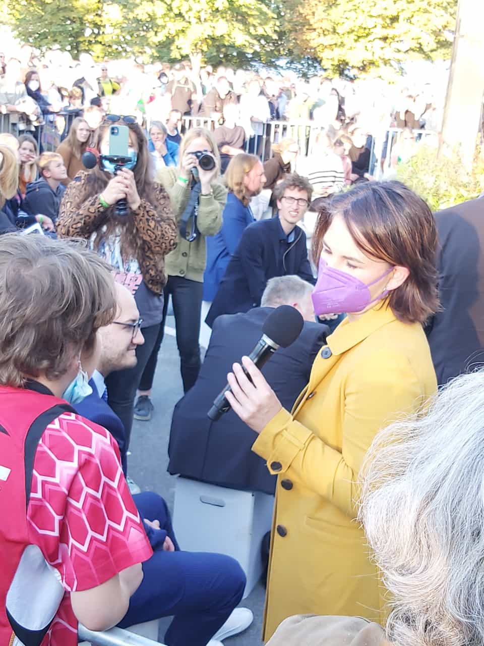 Am Mittwoch 22.09.2021 war unsere Grüne Kanzlerkandidatin und Parteivorsitzende Annalena Baerbock in Würzburg auf der Talavera. Zusammen mit Toni Hofreiter, Fraktionsvorsitzender der Grünen im Bundestag und Sebastian Hansen, Direktkandidat der Würzburger Grünen. Über 2500 Menschen waren da, um den Reden zu zuhören und tosenden Applaus zu geben