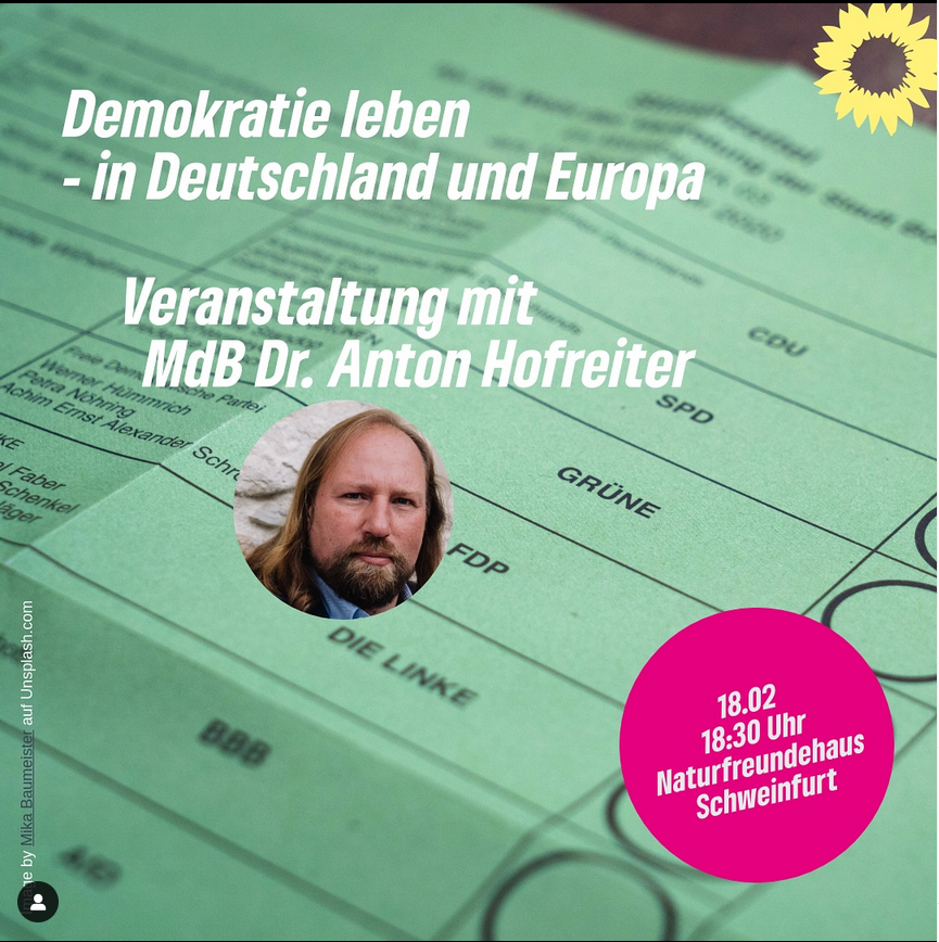 Als Hauptredner haben wir MdB Dr. Anton Hofreiter gewinnen können. Er ist Mitglied des
