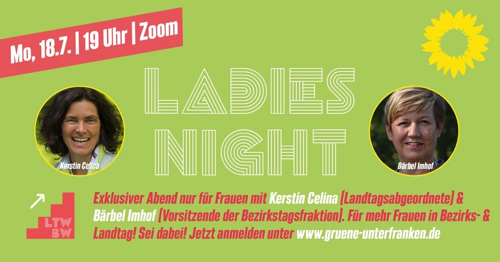 Anmeldung unter: https://gruene-unterfranken.de/termine/ladies-night-bwltw/