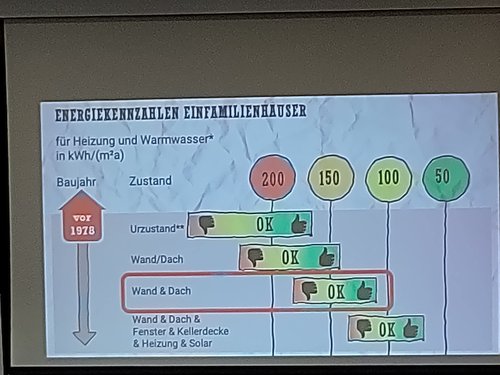 Carsten Herbert wäre nicht der "Energiekommisar", wenn er einem darauf nicht gleich mit einfachen Methoden erklären könnte, wie man von wenig bis mehr Ausgaben auch solche Häuser energetisch aufwerten und in die nächste Kategorie verschieben könnte. Er gliedert seine Massnahmen und Beobachtungen dazu in Kostenbereiche von 0, 10, 100 und 1000€ aufwärts. Für alle war was dabei!